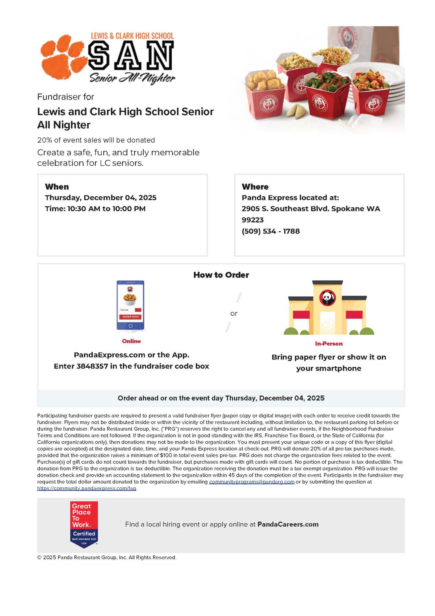 Dine out with a purpose at Panda Express and support the LC Senior All-Nighter!